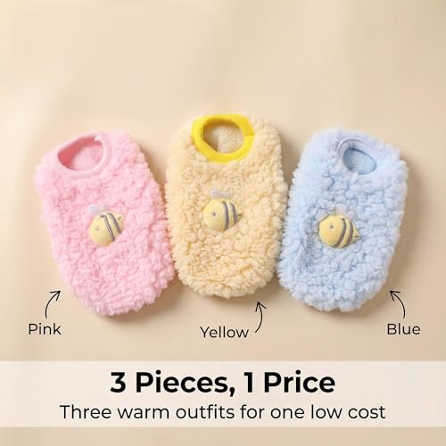 FLAdorepet 3 Packs Teacup Dog Cat XXS Clothes for Chihuahua Yorkie,Winter Warm Fleece Puppy Pet Clothes Sweater Shirt Vest for Mini Newborn Extra Small Dogs (3 Packs, XXS(Pet 1-2LBS))