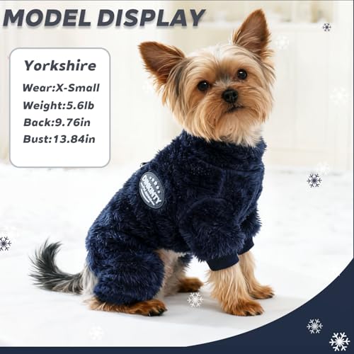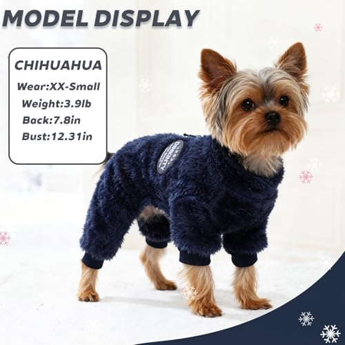 Dog Sweater for Small Dogs Fleece Dog Pjs Winter Warm Puppy Sweater Thermal Soft Stretchy Doggie XXS Doggie Clothes Outfits Cat Apparel (Navy Blue, XX-Small)