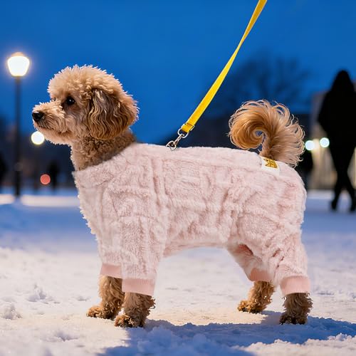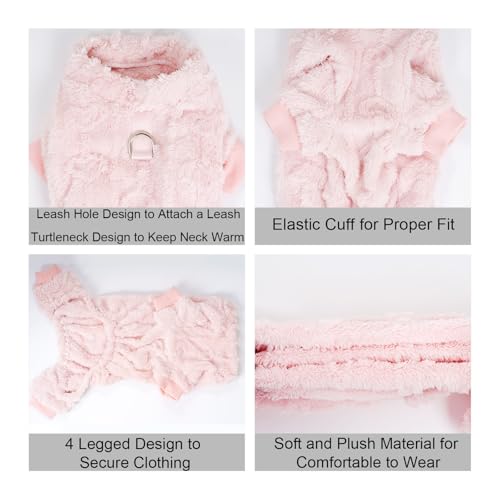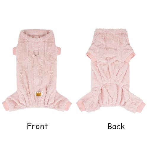 Plush Dog Pajamas for for Small Dogs Cats, Dog Sweater with Leash Ring Ultra Soft Warm Pet Clothes Puppy Onesie Outfits Doggy Pjs Jumpsuit for Winter Christmas (Pink, Large)