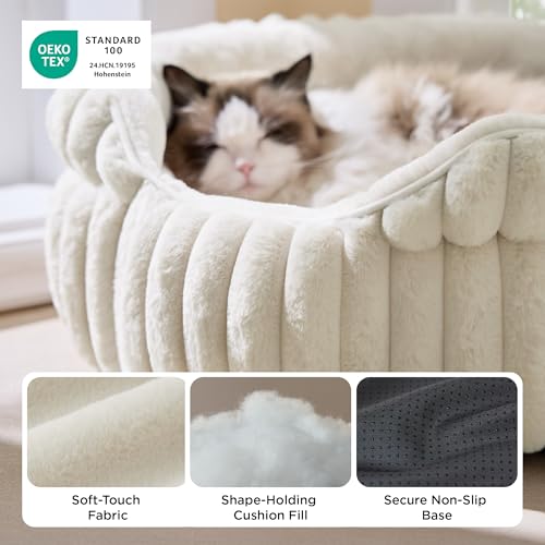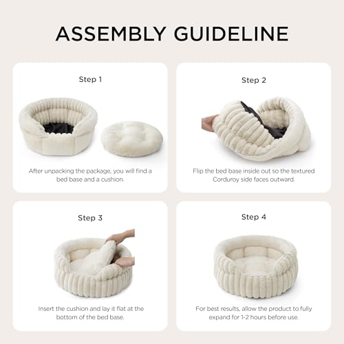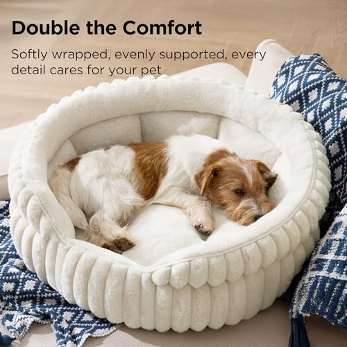 Bedsure ComfyFleece™ Medium Dog Bed, Washable Cute Pet Bed, Super Soft Corduroy Round Cat Bed with Anti-Slip Bottom, 26”x26”x9”, Cream