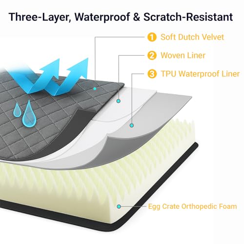 【Waterproof, Supportive & Slip-Resistant Design】This versatile dog bed features an ultra-soft, plush top for cuddling, whose backing incorporates a TPU waterproof membrane to help resist liquids from penetrating the inner foam, aiding in keeping the cushioning layer dry, a supportive cushioned middle layer that conforms to your dog’s shape to evenly distribute weight. A supportive middle layer conforms to your dog’s shape to help distribute weight, and the enhanced non-slip bottom helps keep the bed secure on hard floors, providing a stable rest area for playful puppies and active dogs