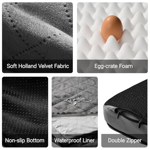 Cozy Dog Beds for Small Dogs – Orthopedic Egg Crate Foam Pet Bed with Removable/Washable/Waterproof Cover & Non-Slip Bottom, Ideal for Crate and Indoor Use, 23×17 Inch, up to 15 lbs, Dark Grey