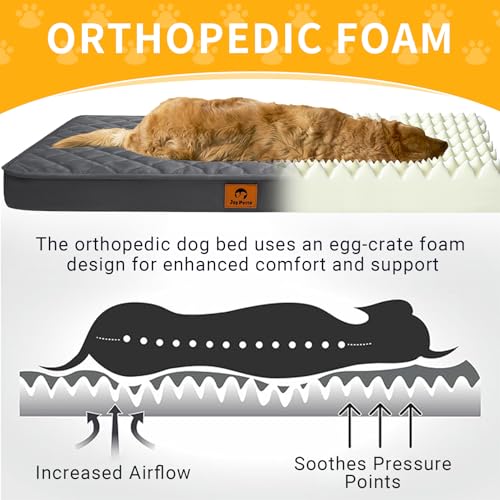 【Engineered for Enhanced Comfort with Egg Crate Foam】Infused with 3-inch high-density egg crate foam, this supportive bed is designed to cradle your dog’s body, which may help alleviate pressure points on joints and muscles. Engineered for comfort, the bed’s surface promotes airflow to keep your dog cool. It’s a popular choice for mature and large breeds, offering reliable support every day