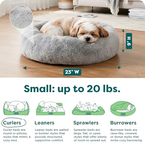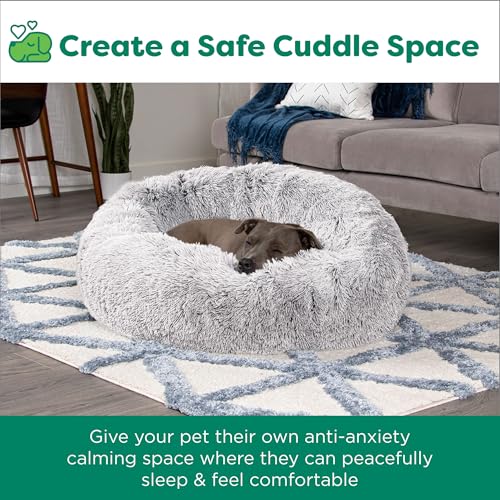 FurHaven 23″ Calming Donut Dog Bed for Small Dogs & Cats, Round Plush Donut Design with Soft Filling for Snuggling Comfort, Removable Washable Cover, Small, Shaggy Faux Fur, Mist Gray