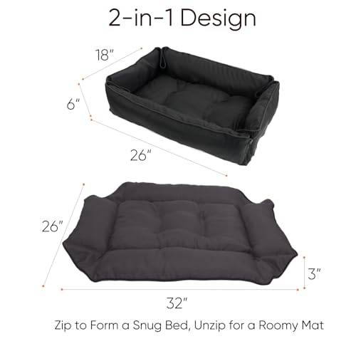 2-in-1 Convertible Design – Unique zipper system allows you to zip it up into a cozy dog bed sofa or unzip to transform into a spacious dog bed mat. Foldable and portable, this washable dog bed adapts to your pet’s needs whether at home, travel, or kennel.