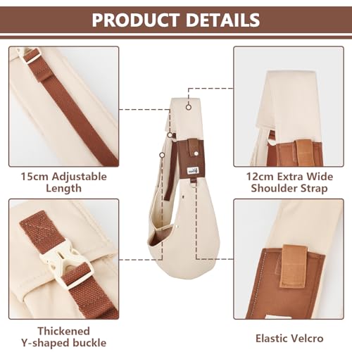 🐶 COMFORT & SAFETY:①Dog carrier sling has adjustable shoulder strap for various heights and weights;②Wide shoulder area for even weight distribution and reduced pressure;③Metal buckle with adjustable ventilation;④Pure cotton fabric for increased durability;⑤Breathable and comfortable fur lining;⑥Anti-escape buckle for safe travels.