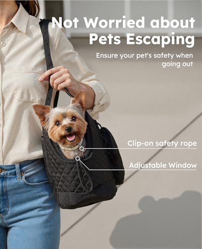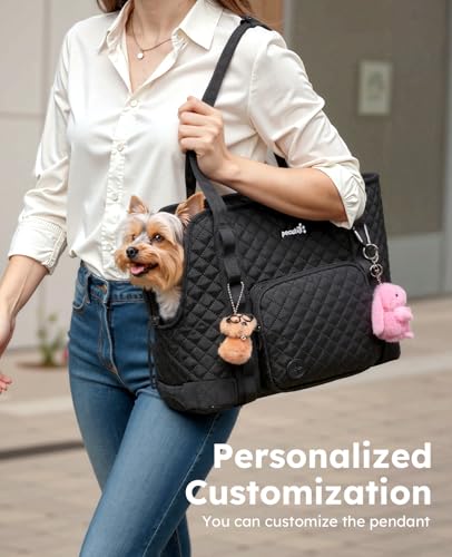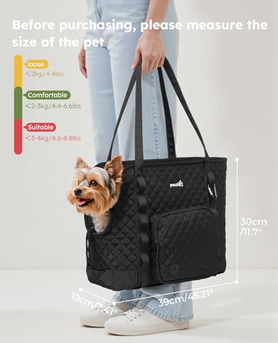 Pecute Dog Purse Carrier, Dog Carrier with Pockets for Small Dogs, Fits Dogs 5 lbs to 9 lbs, Cat and Puppies Tote Bag, Outing, Travel, Vet, Black