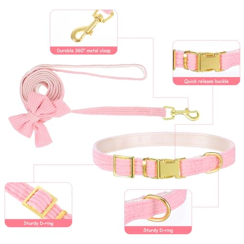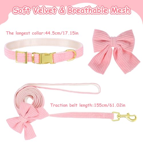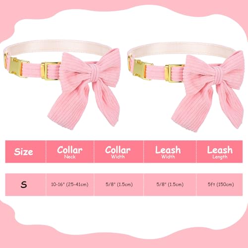 2pcs Dog Collar and Leash Set with Bowtie Cute Small Dog Collar Harness Leash Set Adjustable Breathable Soft Padded for Small Medium Puppy Dogs Metal Buckle Pink S