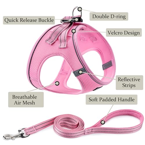 BOOMIBOO Dog Harness with Leash Set, No Pull Adjustable Reflective Step-in Puppy Pet Vest Harnesses for Small Medium Large Dogs and Cats,Pink XXS
