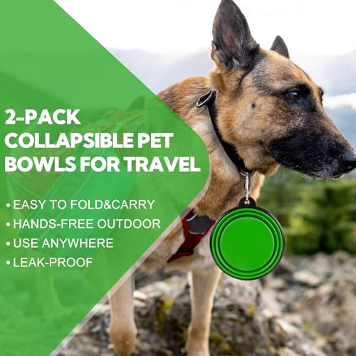 🐶【Ultra Portable & Space-Saving Design】Our dog travel bowl 2-pack effortlessly folds into a flat pancake-like disc, slipping easily into your backpack, pocket, or car glove compartment. The ultra-lightweight design ensures zero burden on all your adventures, making it the perfect travel companion for city walks, cross-country road trips, and camping excursions.