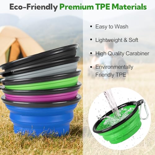 🐱【Leakproof & Durable High-Grade TPE 】Made of environmentally friendly TPE material, it is free of BPA and lead, and has no unpleasant odor. This portable water bowl is built to last. It’s completely leakproof when in use, preventing messy spills. The odor-resistant and chew-resistant material stands up to even the most enthusiastic eaters, ensuring a safe and durable feeding solution.