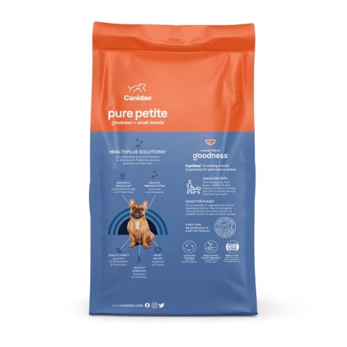 Canidae PURE Petite Salmon Recipe Small Breed Adult Dry Dog Food is is formulated by the AAFCO Dog Food Nutrient Profiles for maintenance. Canidae PURE Petite Grain-Free Limited Ingredient Formulas offer your smaller dog a well-rounded meal that’s been crafted with their health and well-being in mind, plus the small kibble size is ideal for finicky small breed dogs. Our Salmon Recipe is made using a limited number of wholesome ingredients that are easily recognizable, with real salmon as the first ingredient, along with peas and lentils. We then raw coat our kibble with freeze-dried raw salmon for the amazing taste your dog craves. This grain-free, hypoallergenic dog food is ideal for pups with a sensitive stomach and offers nothing but pure goodness for your best friend. High quality, wholesome ingredients like farm-grown veggies and premium proteins rich in essential amino acids and omega 3 and 6 fatty acids means you’re giving your pet the goodness they deserve with no corn, wheat, soy or other fillers. Canidae pet foods are nutritionally dense, nourishing your dog in every bite. Canidae was founded in 1996 with the belief that pet food needed to be better. Better for pets and better for us all. That belief lives on today in our mission to create a world of sustainable goodness for pets and our planet. We nourish pets and planet in every bowl, through our use of wholesome, responsibly sourced proteins, and our investment in regenerative farming, sustainable operations, and eco-friendly packaging, setting a new standard for the pet food industry. Everything we do results in a better product. A bowl full of goodness.
