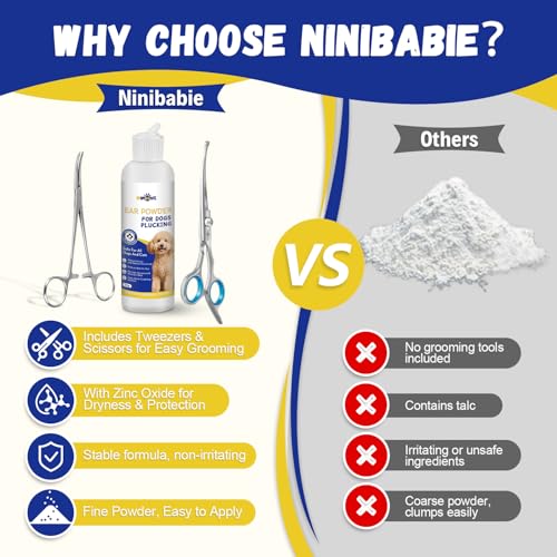 Dog Ear Hair Removal Kit – Ear Powder,Blunt Tip Grooming Scissors&Tweezers Set – Safe Hair Plucking Tool for Dogs,Ear Cleaner for Itching,Infection Treatment for Poodles, Doodles