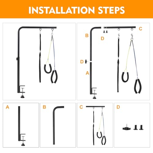 [Durable Material] Our dog grooming table arm is made of heavy duty metal with rustproof coating. It can stand up to long-term use.This grooming arm features sturdy clamps to securely hold it in place while you groom your furry friend.