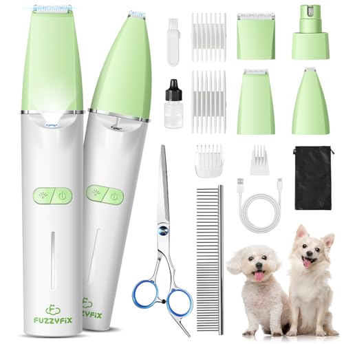 Dog Grooming Kit with LED Light, Low Noise Rechargeable 4 in 1 Pet Clippers for Matted Hair, Cordless Electric Cat Paw Trimmer Dog Nail Grinder, Grooming Supplies for Cat and Small Dogs