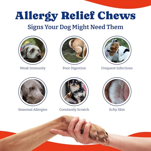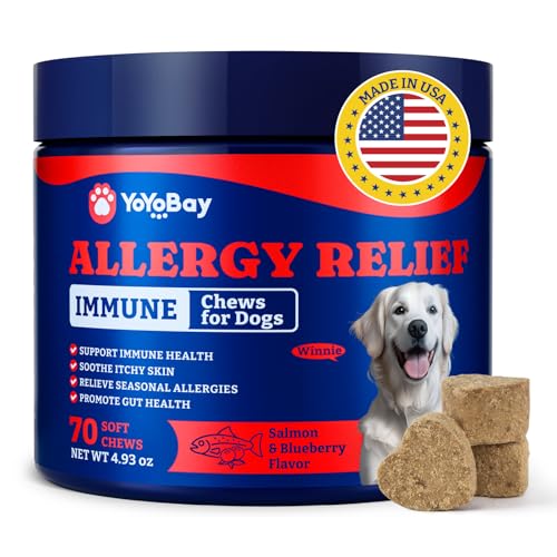 Dog Allergy Relief Chews – 70 Soft Chews, Salmon & Blueberry Flavor – Immune Support & Itch Relief with Colostrum, Astragalus Root, 6-Strain Gut Health Blend