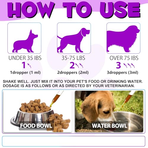 【15 in 1 Dog Multivitamin Supplement】 We put 15 dog vitamins together for all-round dog health balance. Liquid formula makes it more easy for small or senior dogs. Shake well before use. It can be given directly to your dog orally, mixed with their food, or added to their water.
