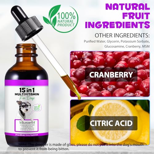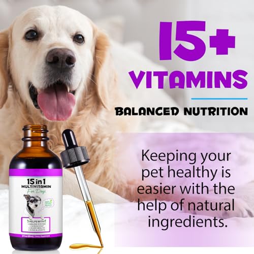 Dog Multivitamin,15 in 1 Dog Multivitamin Liquid Drops Supplements, Dog Vitamins for Heart Health, Bones, Joint, Skin & Coat, Bladder, Immune System Support 60ml