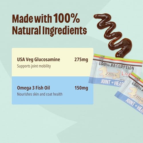 Licks Pill-Free Small Breed Dog Joint and Heart – Glucosamine & Omega 3 Fish Oil Supplement for Dogs – Inflammation Supplements for Joint Support – Gel Packets – 10 Use
