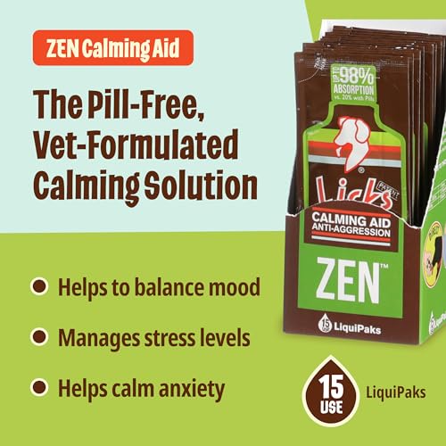 Licks Pill Free Zen Dog Calming – Calming Aid Supplements for Aggressive Behavior & Nervousness – Treats for Stress Relief & Dog Health – Gel Packets – Braised Beef Flavor, 15 Use
