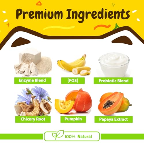 Premium Natural Ingredients for Gentle Care: Made with non-GMO, wheat-free, and soy-free ingredients, these probiotics for dogs are gentle enough for dogs with sensitive stomachs. Digestive boosters like chicory root, FOS, and pumpkin work together to regulate digestion and support overall gut health.