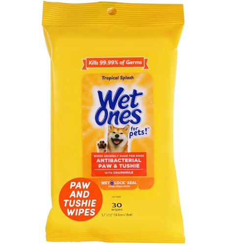 Wet Ones for Pets Paw & Tushie Dog Wipes with Chamomile, Tropical Splash Scent – Cleansing Wipes for Paws and Butt Between Baths with Wet Lock Seal, 30 Count