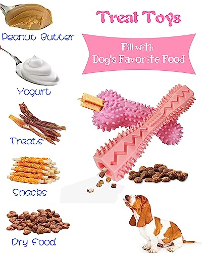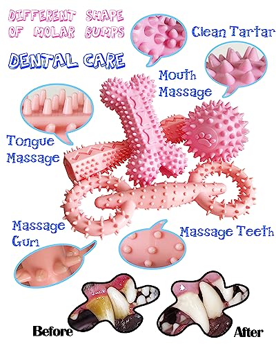 4 Pack Puppy Teething Toys Dog Durable Chew Toys Soft Rubber Toy Dog Teeth Cleaning Toothbrush Toy Cute Interactive Toys for Puppies Small Breed (Pink)