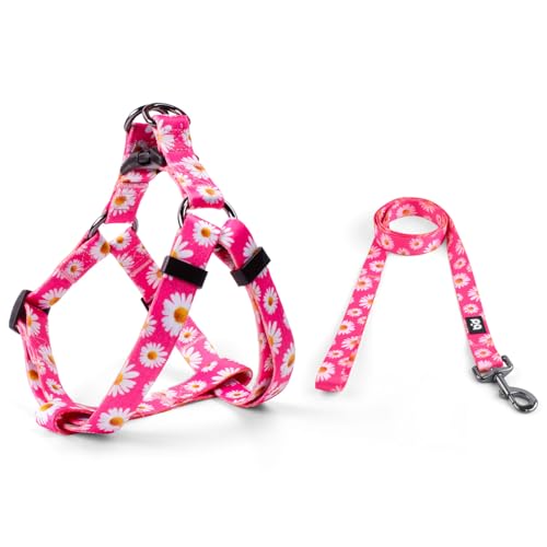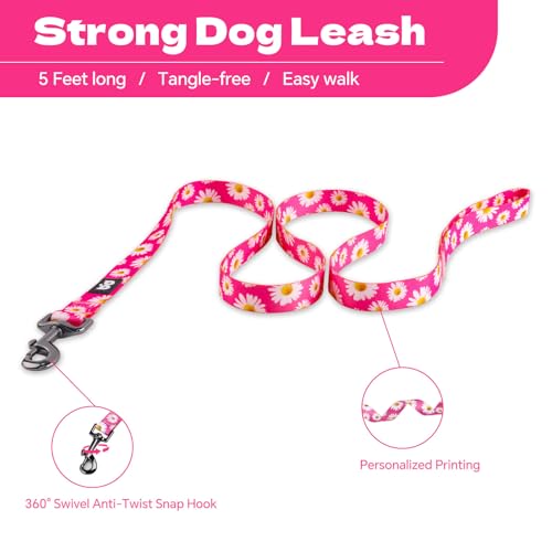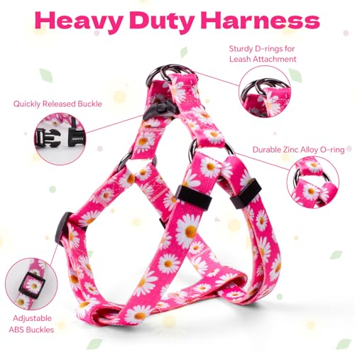 QQPETS Dog Harness Leash Set Adjustable Heavy Duty No Pull Halter Harnesses for Small Medium Large Breed Dogs Back Clip Anti-Twist Perfect for Walking (XS(12″-18″ Chest Girth), Daisy)