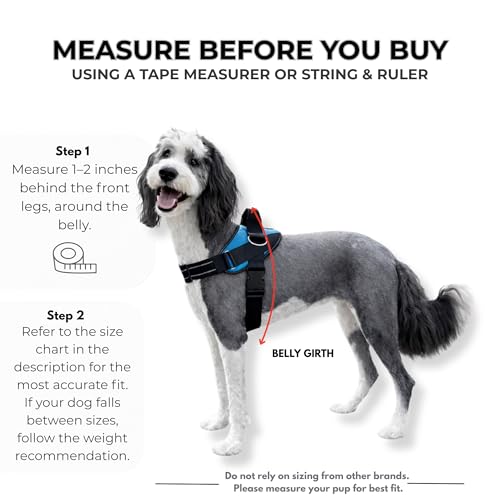 FULLY ADJUSTABLE: Both the chest and belly strap are fully adjustable for the perfect fit for small dogs, medium dogs and large dogs. Our harness is also fully equipped for nighttime safety with a reflective chest strap and reflective trim lining that outlines our harness helping to keep your dog safe anytime, day or night.